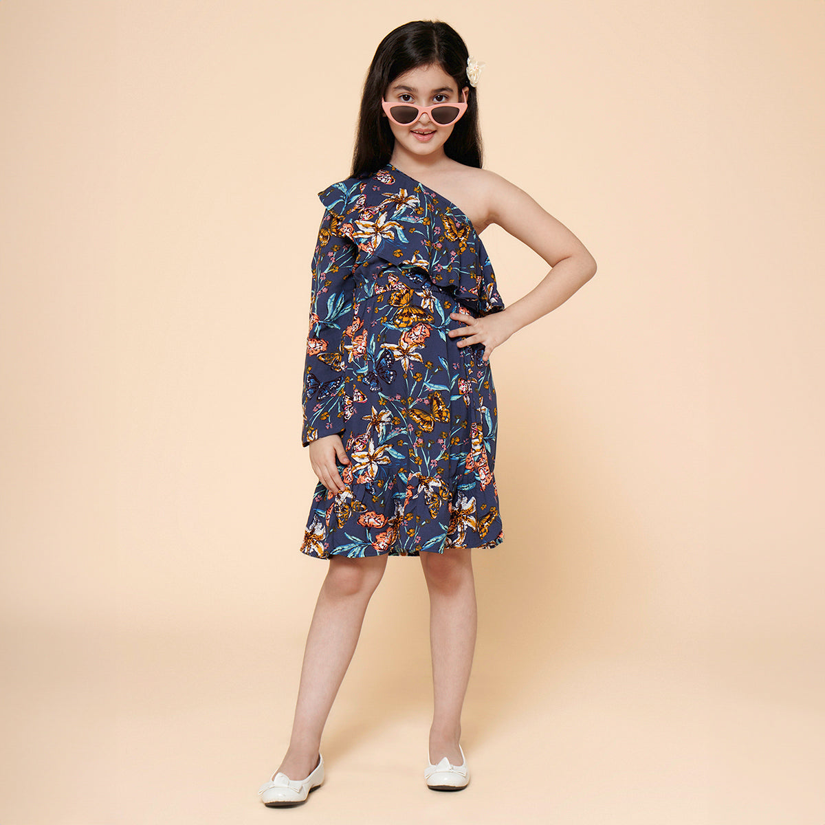 Inform when this item available One Shoulder Ruffled Dress - Blue