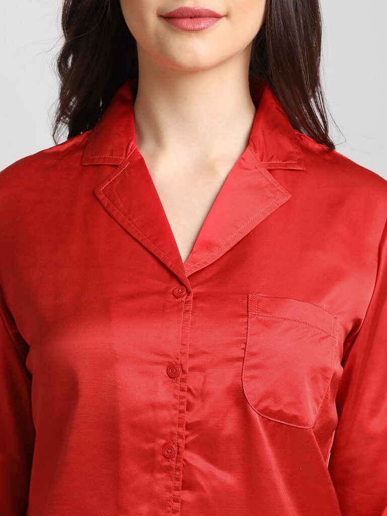 Inform when this item available Drape In Vogue Red Satin Night Suit