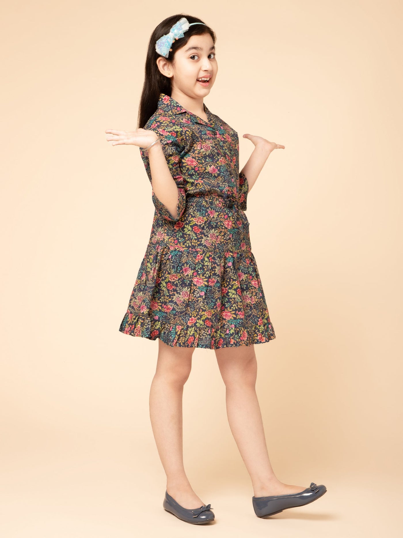 Inform when this item available Girls Floral Printed Skirt and Shirt Blue Co-Ord Set